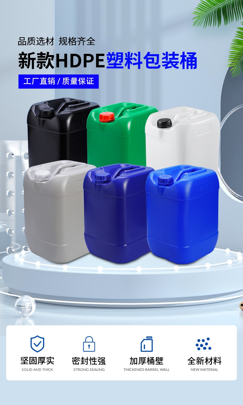 采用全新聚乙烯原料吹塑工藝制作而成,具有耐腐蝕,耐酸堿性,小口設(shè)計(jì)密封性能強(qiáng),廣泛應(yīng)用于化工清潔劑,表面處理劑、輔料添加劑、飼料添加劑, 樹脂農(nóng)藥,日用化學(xué)品,聚氨酯、膠黏劑 消泡劑 電解液等各行業(yè)液體包裝。